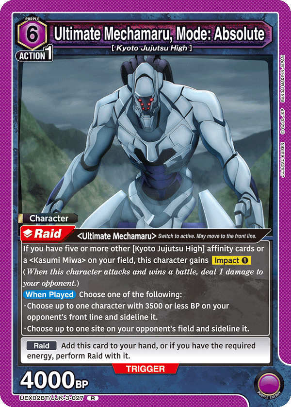 Végezetül, Todo egy nagyon hasznos választás lehet a JJK 2. szettjének Rare Battle formátumába a Mechamaru helyszínromboló képességei miatt, ami megbízható ellenszer a Kék JJK túlságosan erős Malevolent Shrine lapjával szemben.