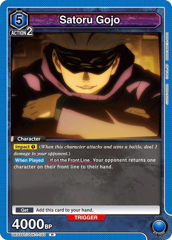 Viszont akkor sem kell kétségbe esned, ha a lapjárás ezt nem teszi lehetővé. Bár az 5 energia és 2 AP költségű Gojo kicsit “drágának” tűnik, viszont lehetőséget ad arra, hogy vissza küldj egy karaktert a ellenfél kezébe, plusz az Impact képességgel mindenképp leszedi az egyik életét, ha nem tudja blokkolni.