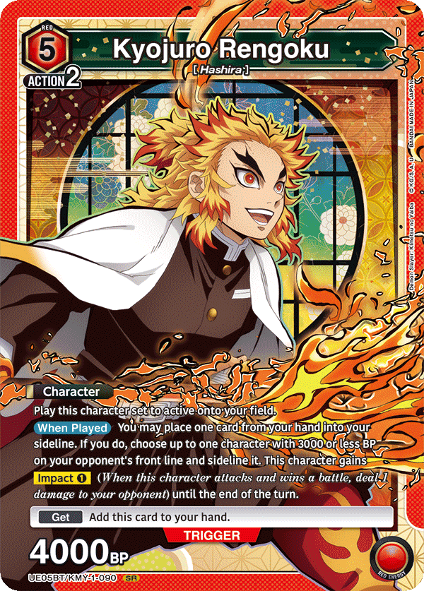 Itt láthatjuk Nezuko-t démoni alakjában, Tanjiro-t szolid lap eltávolító képességgel, és Kanroji-t, aki sok izgalmas dolgot művel, például visszaküldik a karaktereket a kézbe, 5000 BP-vel védekezik, és Damage 2-vel támad.