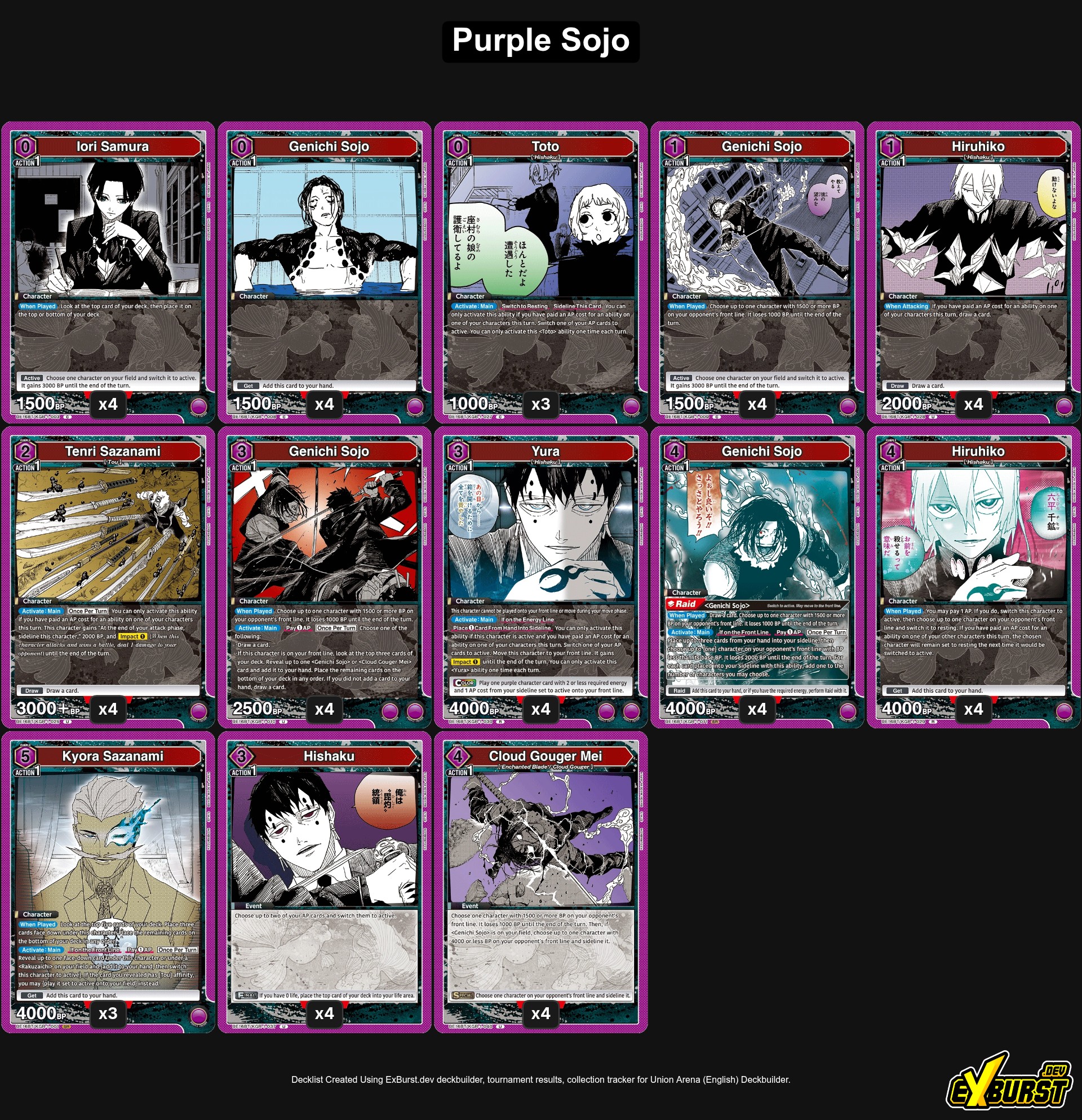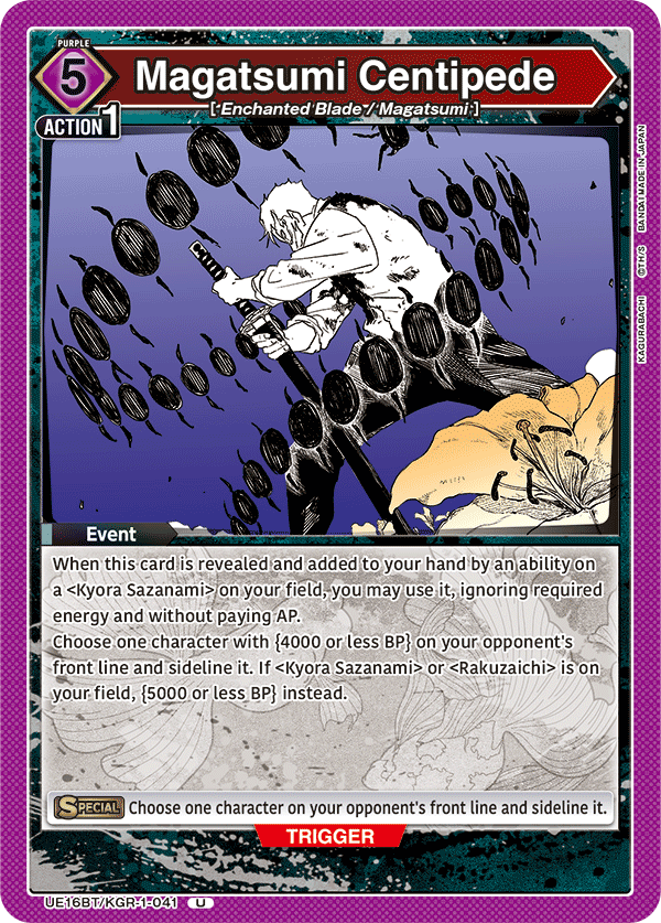Lehet, hogy a Piros Chihiro kapja a legtöbb figyelmet a Kagurabachi debütáló Union Arena szettjében, de Sojo is elképesztően magas potenciállal rendelkezik – bár sokkal több játékelemet kell összeraknod ahhoz, hogy ez a stratégia kifizetődjön. Kezdésként ott van a Raid-es Sojo, amely erőteljes lapeltávolító képességeket hoz a lila színnek, teljesen összhangban ennek a színnek a BP csökkentés iránti hajlamával.