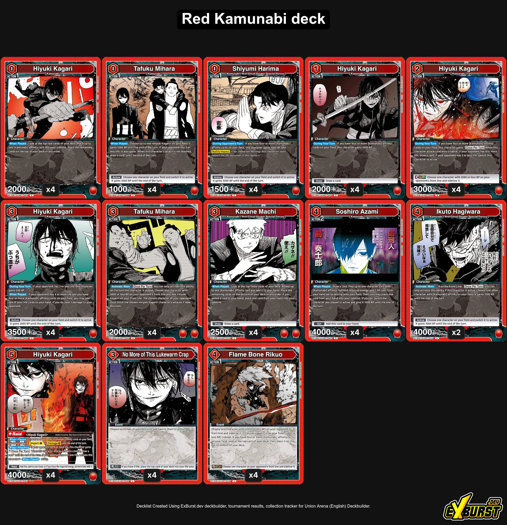 Azonban amiben ez a deck alulmarad a másik, várhatóan sokkal népszerűbb piros deck-kel szemben, az egy erős másodlagos támadó hiánya. Míg Chihiro mögött ott van a négy energia költségű Hakuri, hogy támogassa, ez a deck tényleg úgy érződik, mint egy egyszemélyes Kagari-show. A sokoldalúság feláldozása a nyers, offenzív erőért talán szórakoztatóbb játékot jelenthet néhány játékos számára, de végső soron összességében kevésbé hatékony.